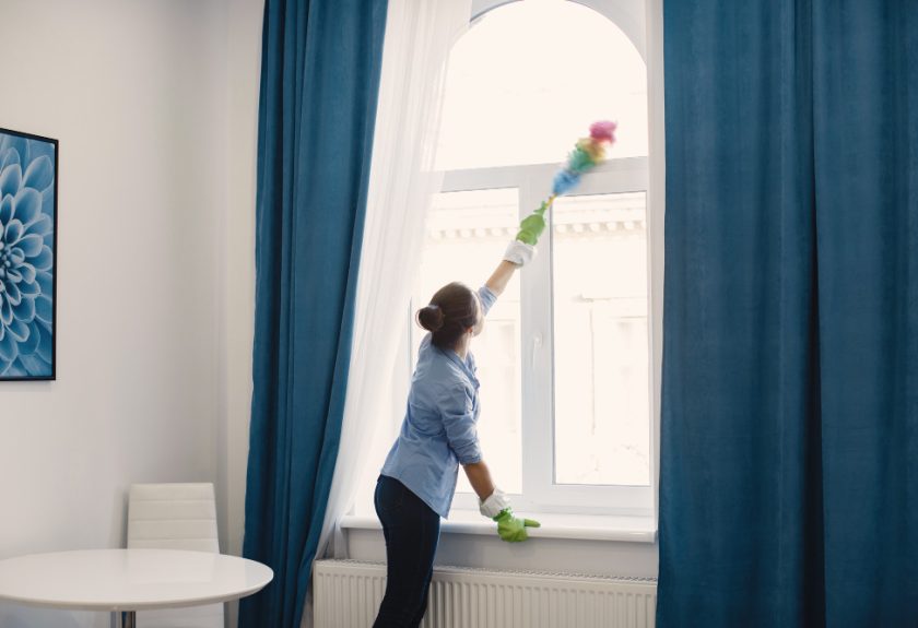 • On-Site Cleaning: Using specialised dry-cleaning solutions, we clean your curtains while they remain hung – no need for the hassle of taking them down.